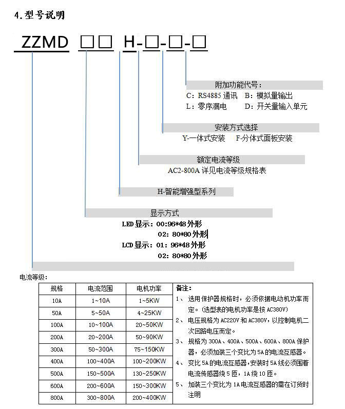● 采用RS485通信总线,可广泛用于各种监控系统作为带有电机保护及控制的智能化监控单元