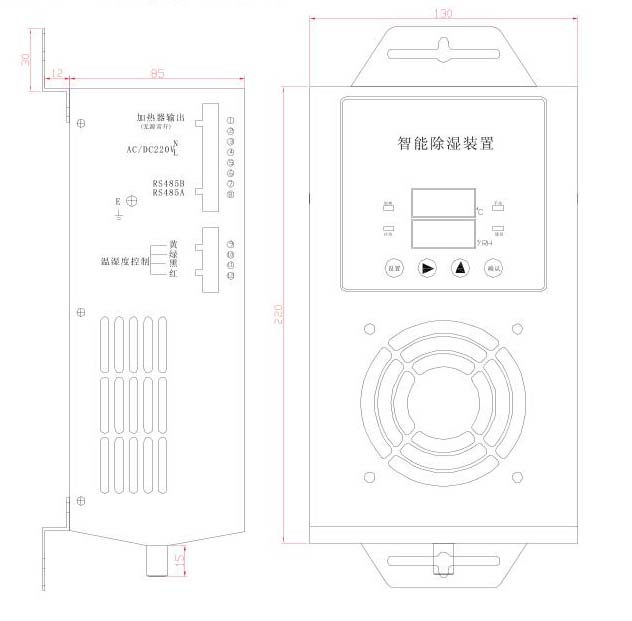 | 性能 | 除湿量 | ≥450ml/天(室温35℃,相对湿度85%RH工况) |